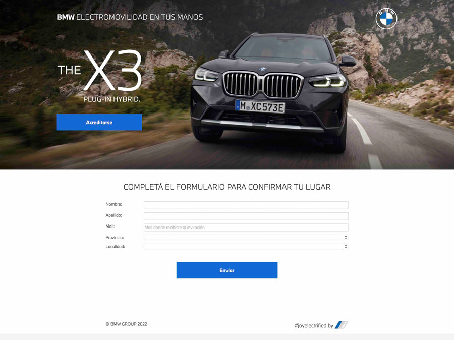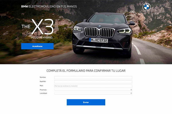 Diseño y programación de landing para registro al evento Electromovilidad de BMW.