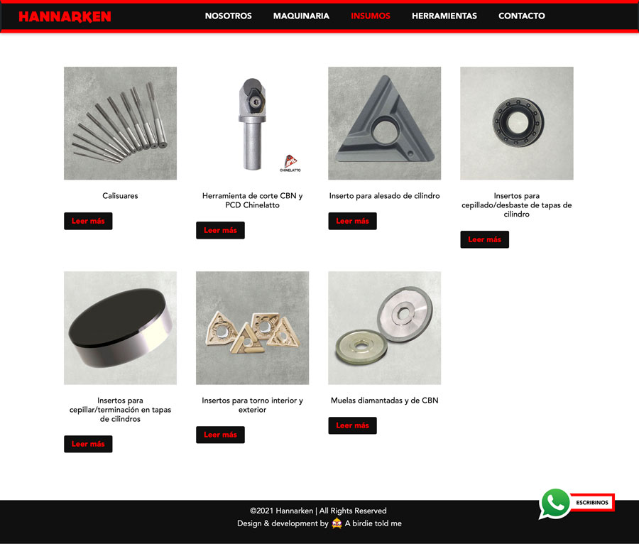 Diseño y programación web para Hannarken, empresa vendedora de instrumental técnico e insumos.