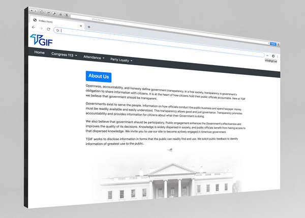 Página web TGIF que representa datos del congreso de EEUU desde ProPublica Congress API. Se crearon