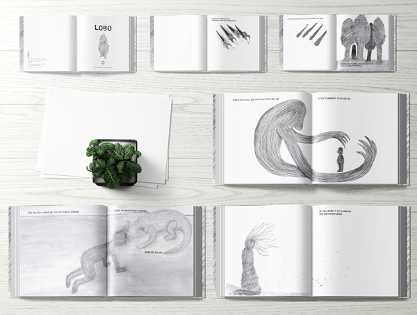 Ilustración de un libro para niños basado en la canción Lobo, de Rosario Bléfari.