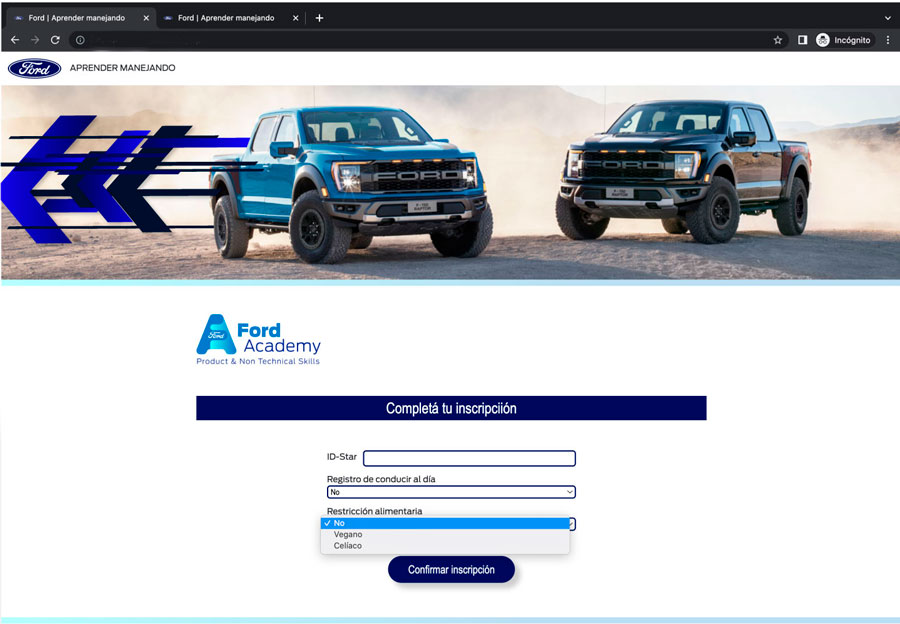 Programación de sitio web para capacitación online de vendedores Ford con streaming de video y descarga de archivos.