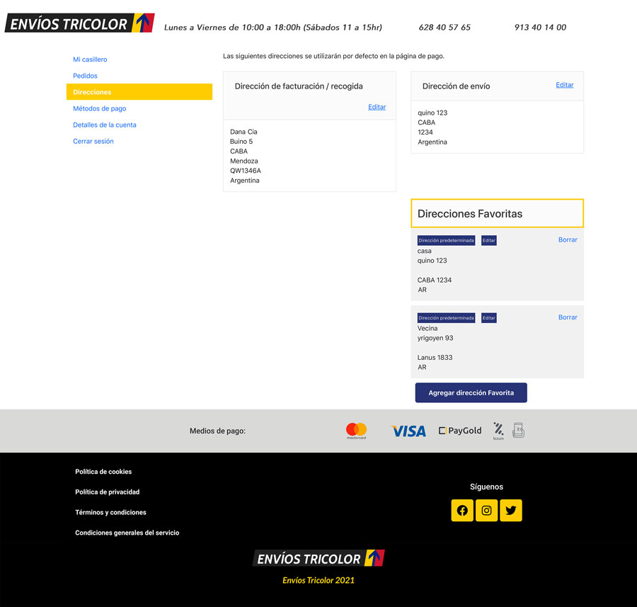 Desarrollo de Plugin para Wordpress y Theme para gestión de casilleros y envíos. Plugin Direcciones favoritas.